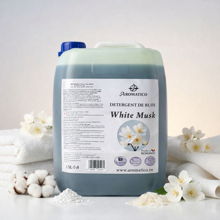 Transformă fiecare spălare într-o experiență parfumată și eficientă cu detergentul lichid White Musk Aromatico