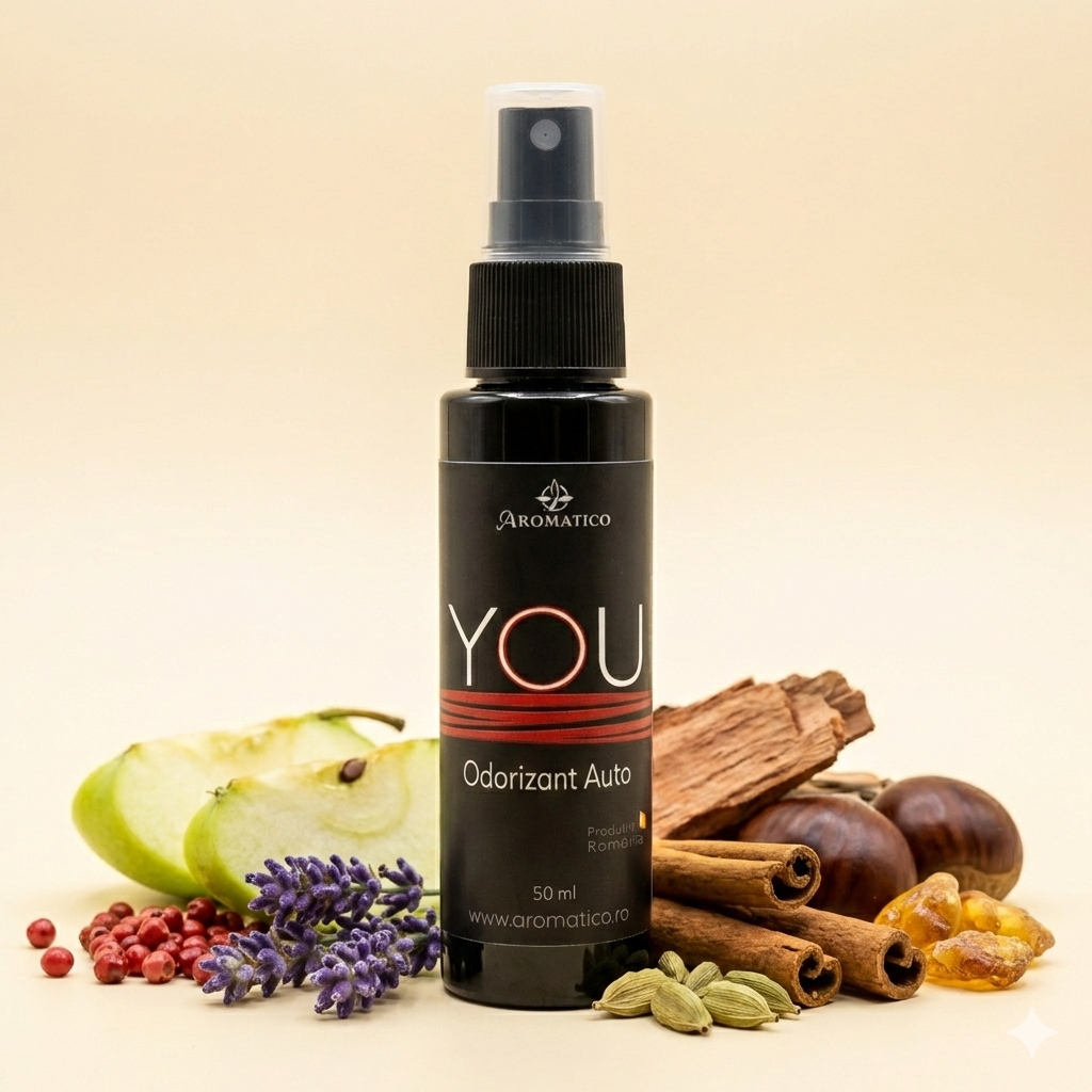 🚗 Aromatico You – Odorizant auto lemnos-condimentat, cu esență de parfum pe bază de ulei