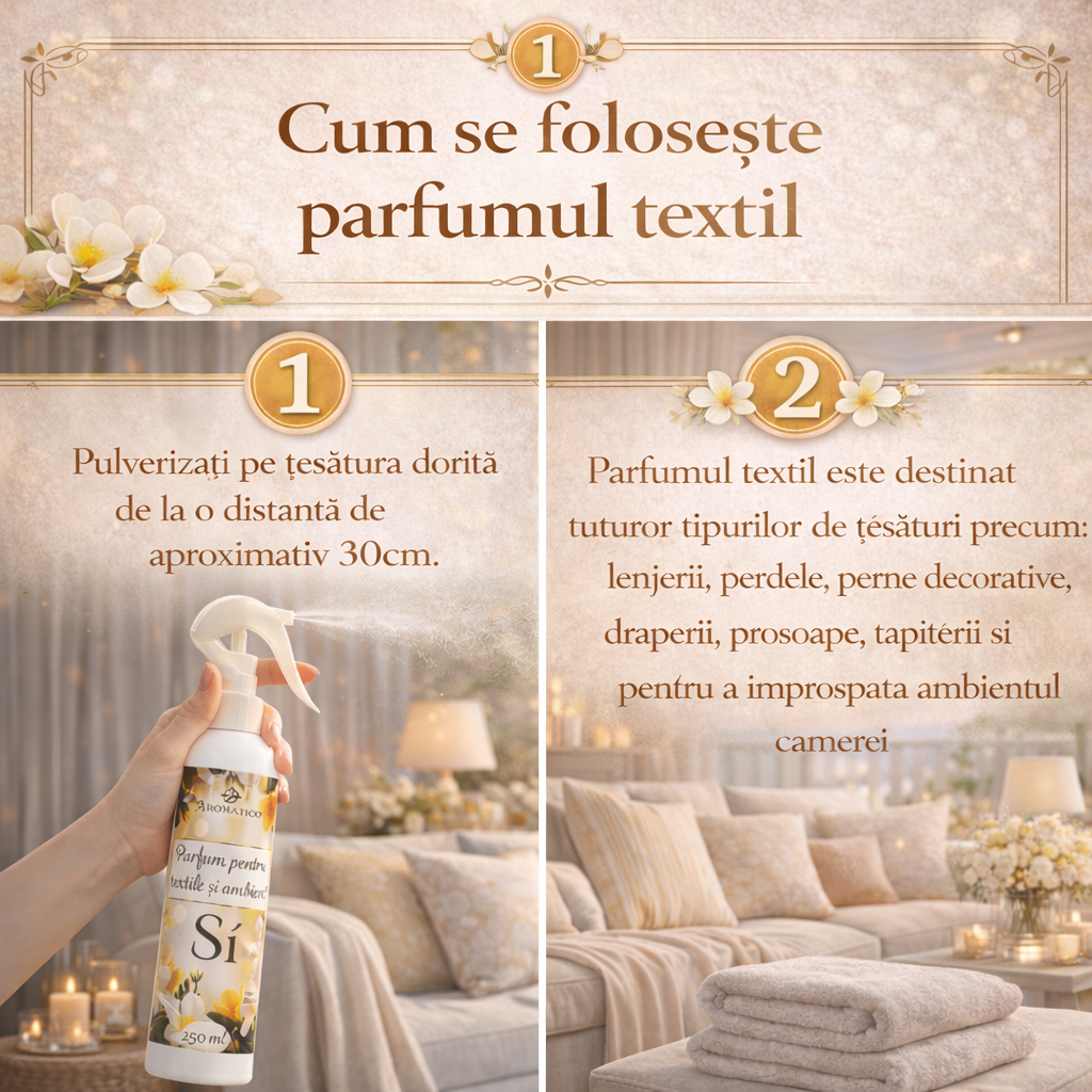 Aromatico Si este mai mult decât un parfum textil – este o declarație olfactivă de feminitate, un da rostit cu încredere și rafinament. Ideal pentru femeia modernă care vrea să lase o urmă parfumată oriunde merge.